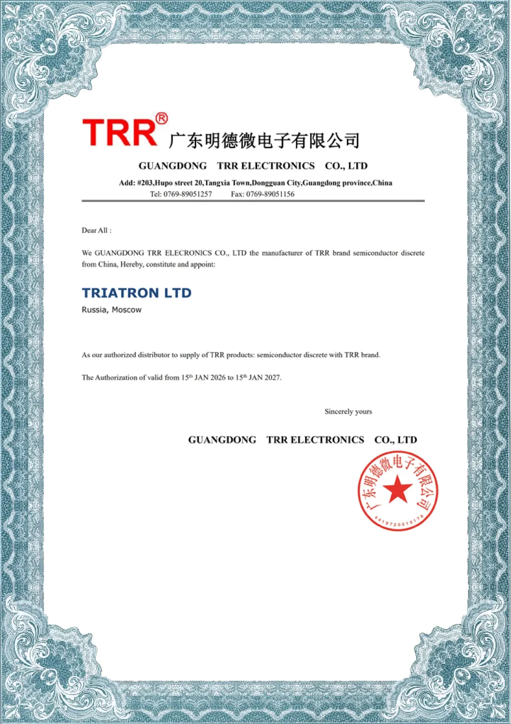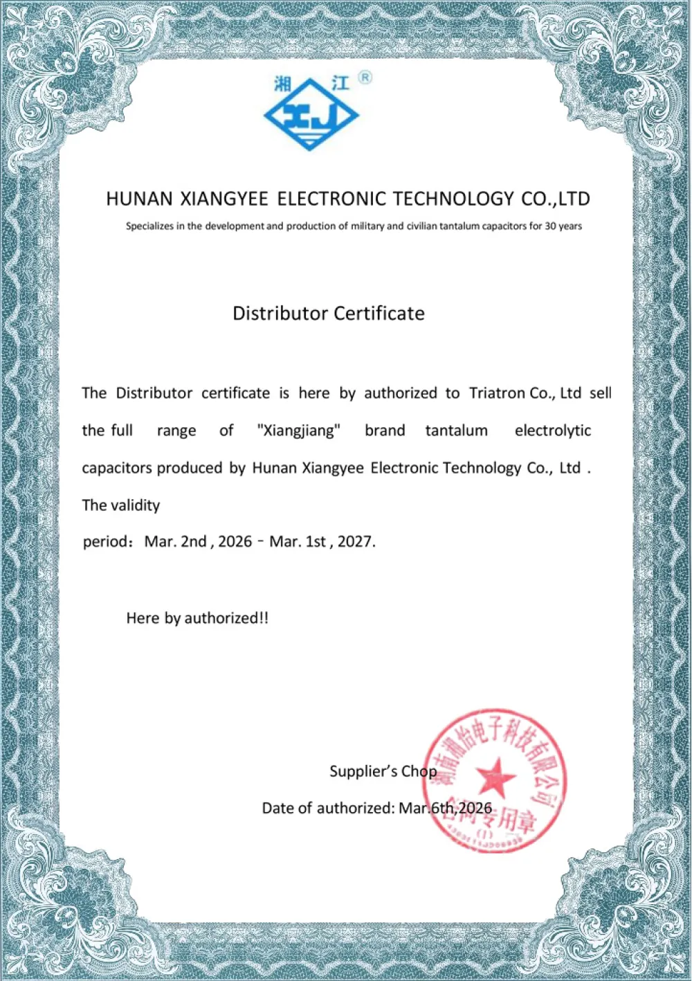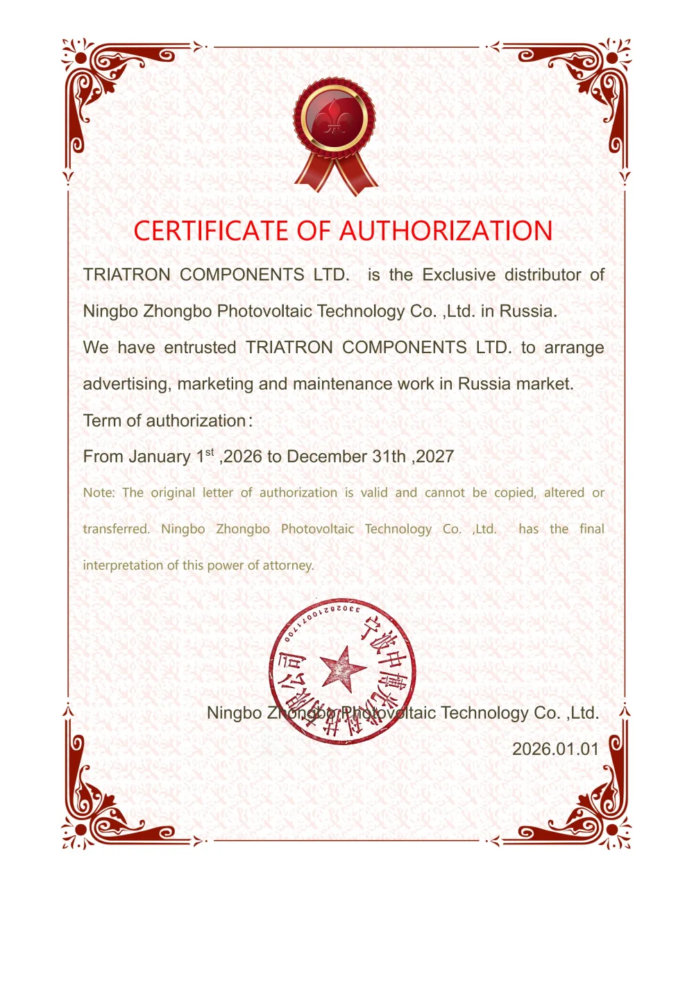 CERTIFICATE TIANBO