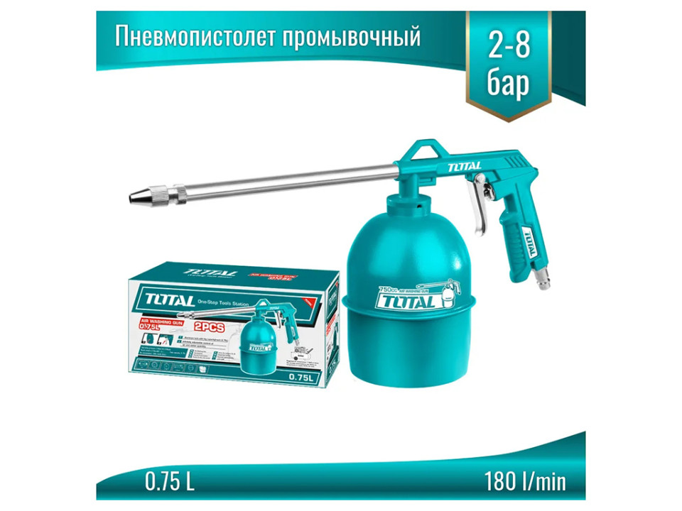 • TAT20751, Пневмопистолет промывочный, 2-8 бар, кнопка стравливания давления, шкала 0-12 бар TOTAL
