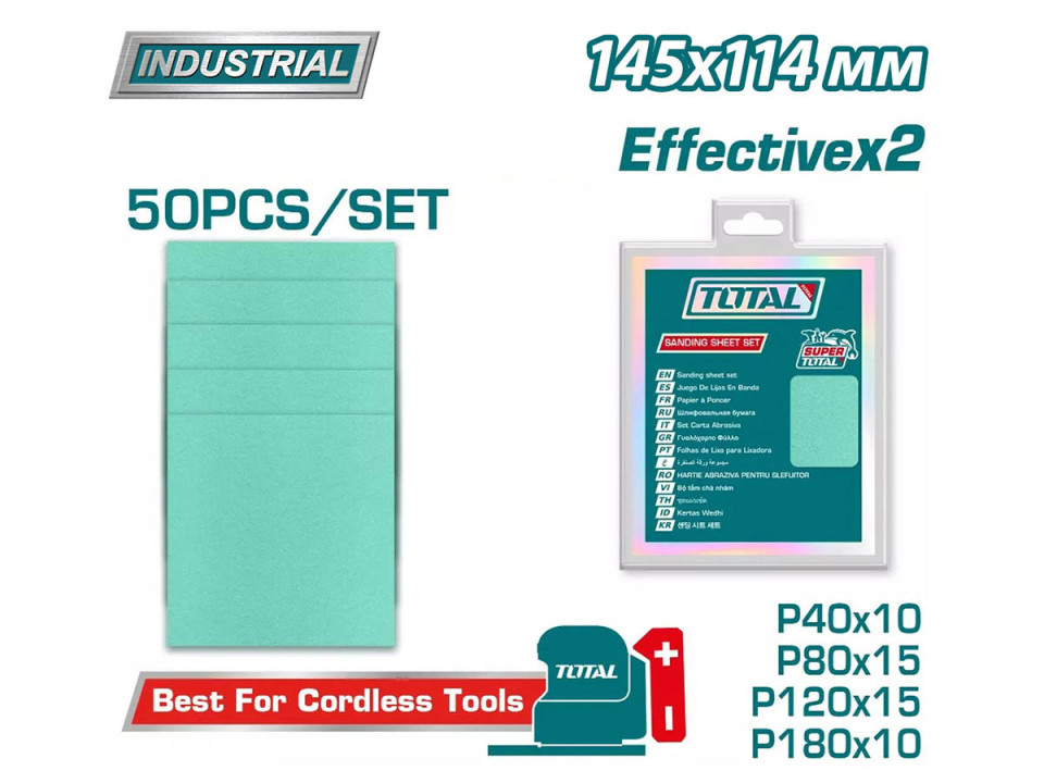 TAC145115, Шлифовальная бумага,145X114мм,50шт./набор, P40x10шт. P80x15шт. P120x15шт. P180x10шт. Tota за 665.53 руб. купить со склада в Москве. Описание, характеристики, аналоги, условия доставки, цены и наличие товара в каталоге на официальном сайте интернет-магазина www.triatron.ru Доставка по Москве и России.