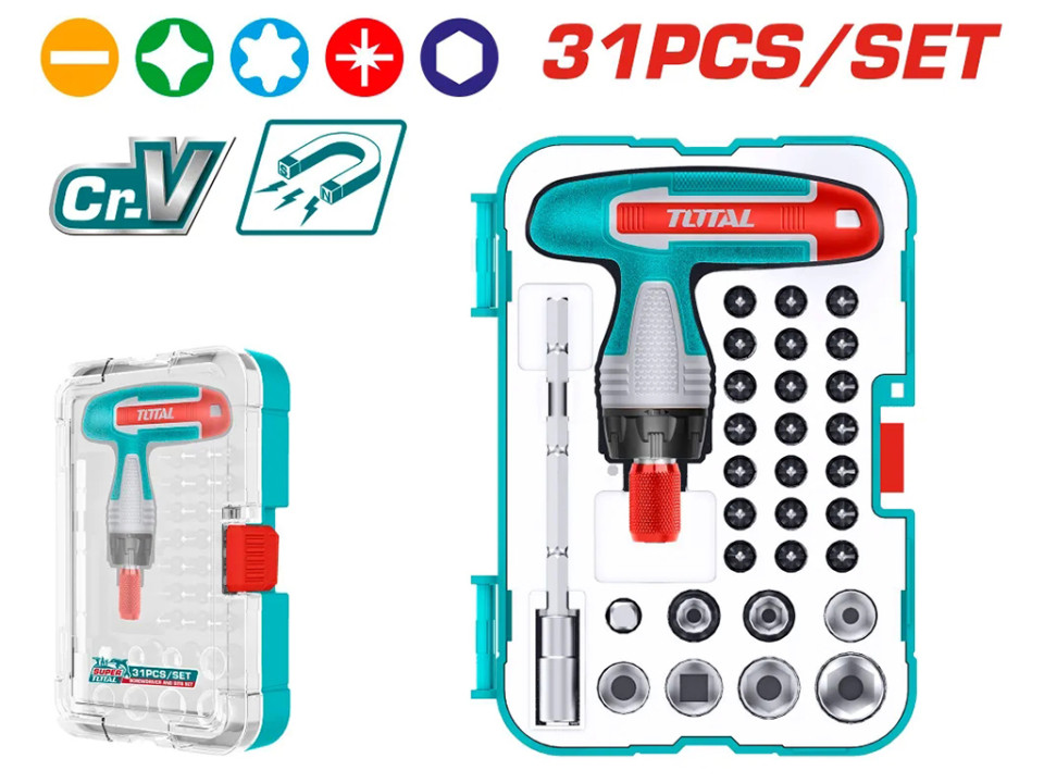 • TACSD30316, Отверткa Т-образная с битами 31шт, TOTAL