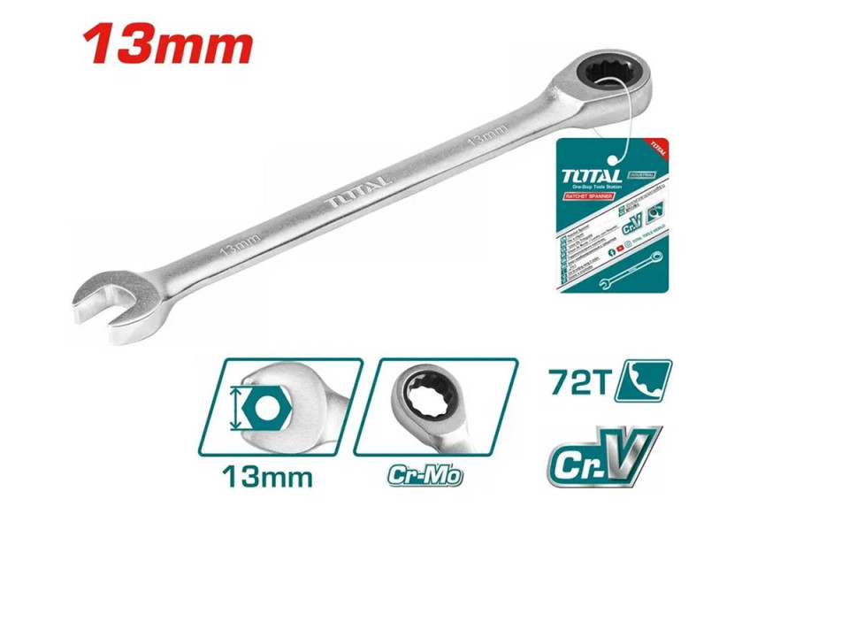 TCSPAR131, Ключ комбинированный с трещоткой 13мм, длина 178мм TOTAL за 227.47 руб. купить со склада в Москве. Описание, характеристики, аналоги, условия доставки, цены и наличие товара в каталоге на официальном сайте интернет-магазина www.triatron.ru Доставка по Москве и России.