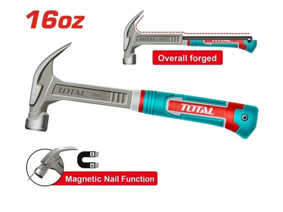 THCH61016L, Молоток-гвоздодер,вес:450г,длина: 345мм,функция магнитного ногтя TOTAL за 1006.92 руб. купить со склада в Москве. Описание, характеристики, аналоги, условия доставки, цены и наличие товара в каталоге на официальном сайте интернет-магазина www.triatron.ru Доставка по Москве и России.