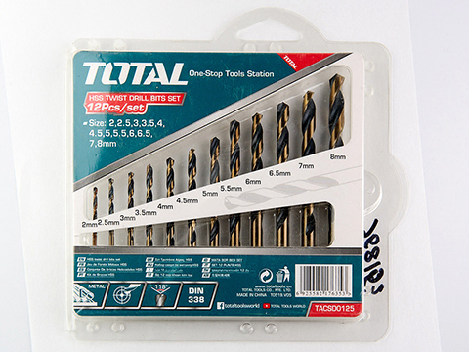 - Набор сверл по металлу 12шт TOTAL (2, 2.5, 3, 3.5, 4, 4.5, 5, 5.5, 6, 6.5, 7, 8 мм)