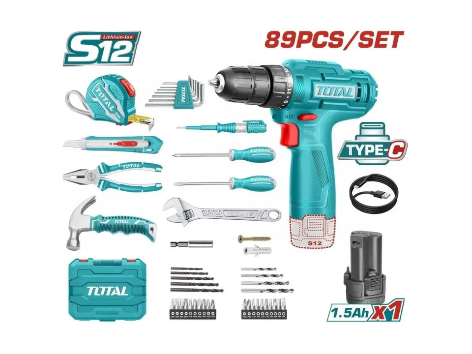 THKTHP10892, Набор инструментов с аккумуляторной дрелью 89шт 12V,0-750об/мин,20Нм, емкость патрона: