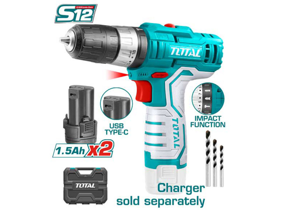 TIDLI12328, Аккумуляторная ударная дрель-шуруповерт 20Нм, Li-ion 12V,1.5Ah (кейс, 2 аккумулятора3 с