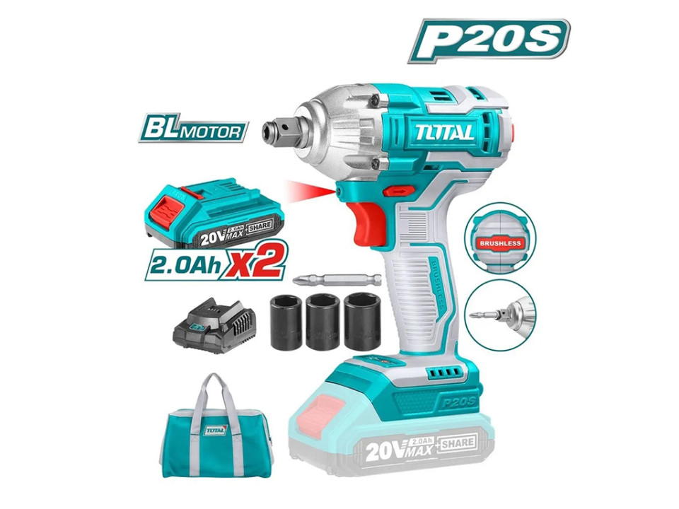TIWLI20208, Аккумуляторный ударный гайковерт 1/2', 220 Нм, Li-Ion 20V 2.0Ah, бесщеточный (2 АКБ+ЗУ+с