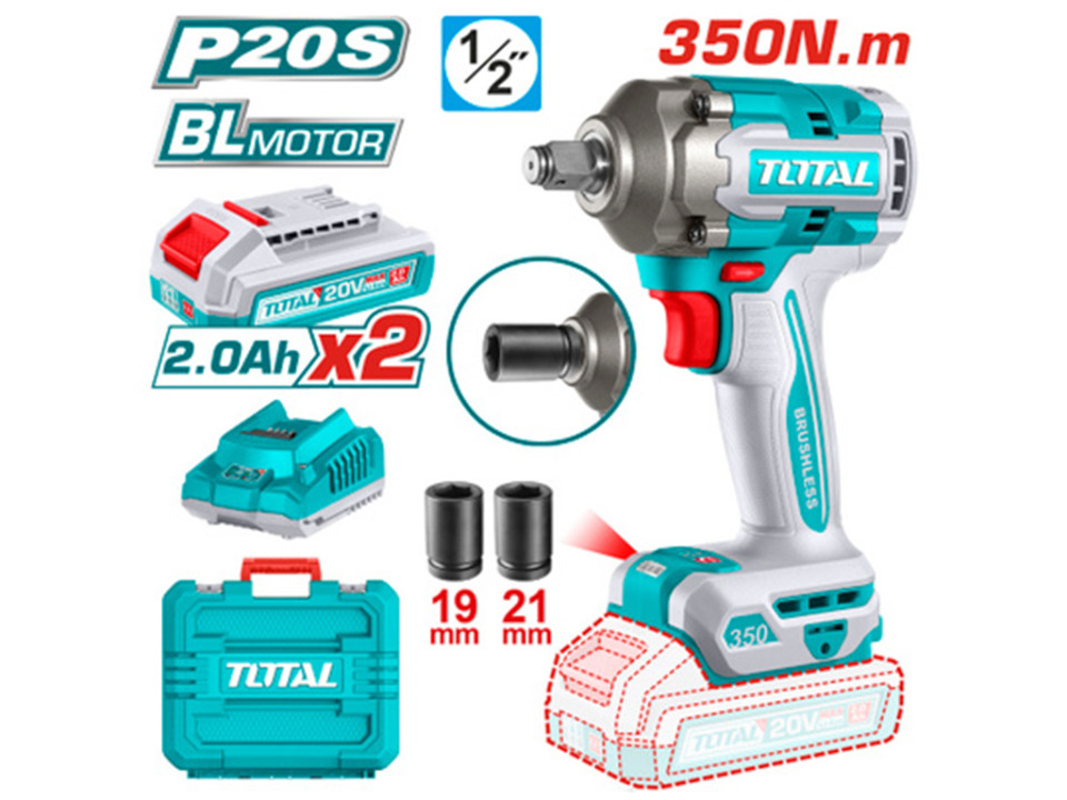 TIWLI2035, Аккумуляторный ударный гайковерт 1/2', 350 Нм, бесщеточный двигатель, фонарь(2 АКБ+ЗУ+кей
