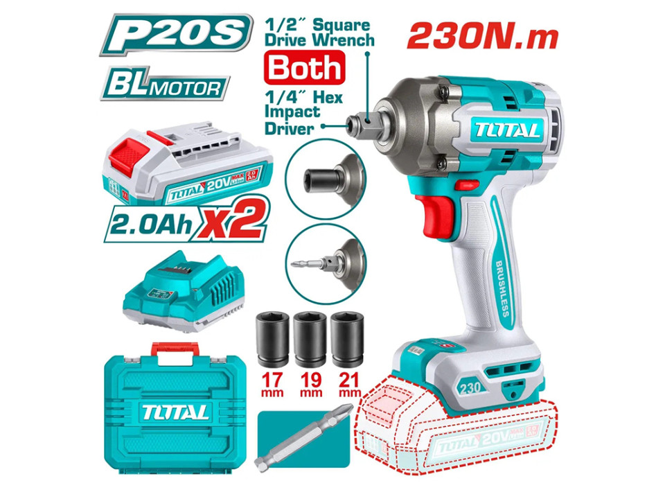 TIWLI20236, Аккумуляторный ударный шуруповерт&гайковерт,20В,квадр привод:1/2',шестигр хвост:6,35мм,2