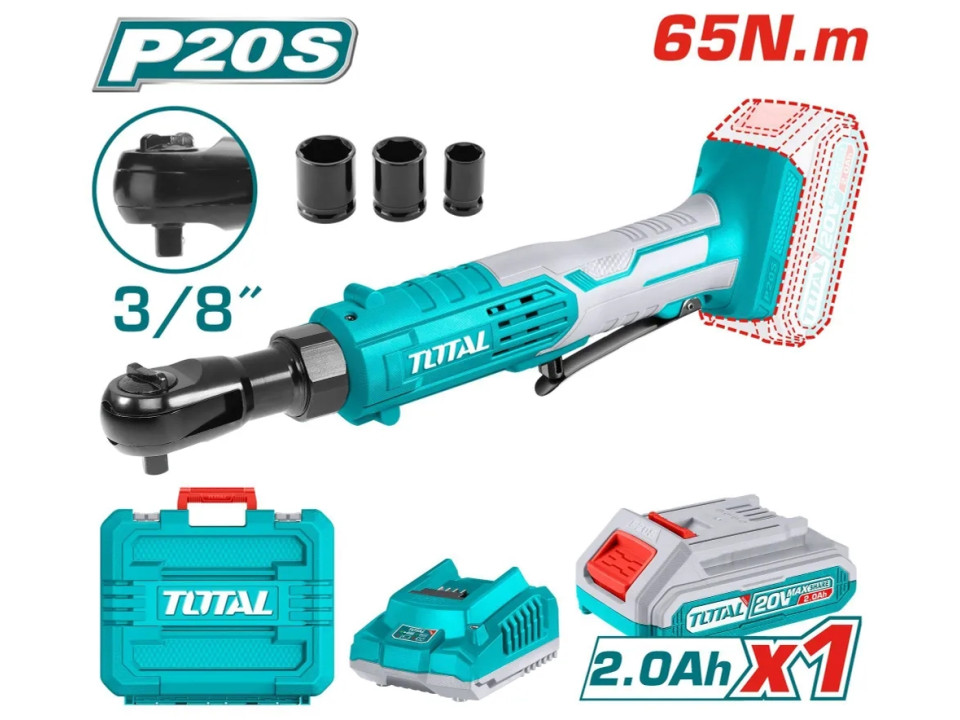 TDRLI2060152, Аккумуляторная трещотка Li-Ion 20В,квадр привод: 3/8',65Нм,скор холост хода: 250/мин.