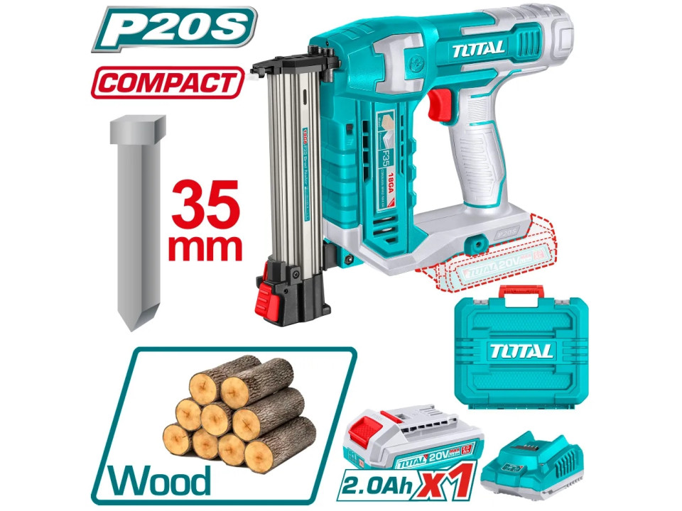 TCBNLI3505, Аккумуляторный гвоздезабиватель Li-lon 20V, тип гвоздя: F15~F35, (без ЗУ и АКБ) TOTAL