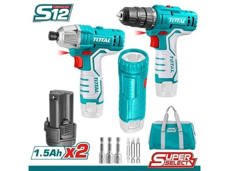 TKLI1203, Набор аккумуляторных инструментов Li-Ion 12V (шуруповерт, винтоверт, фонарик) TOTAL