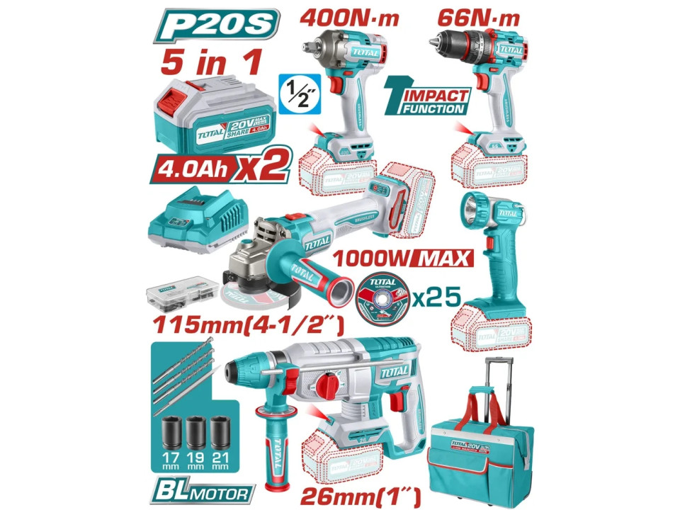 TCKLI20592, Набор профессиональных аккумуляторных инструментов 5шт, TOTAL