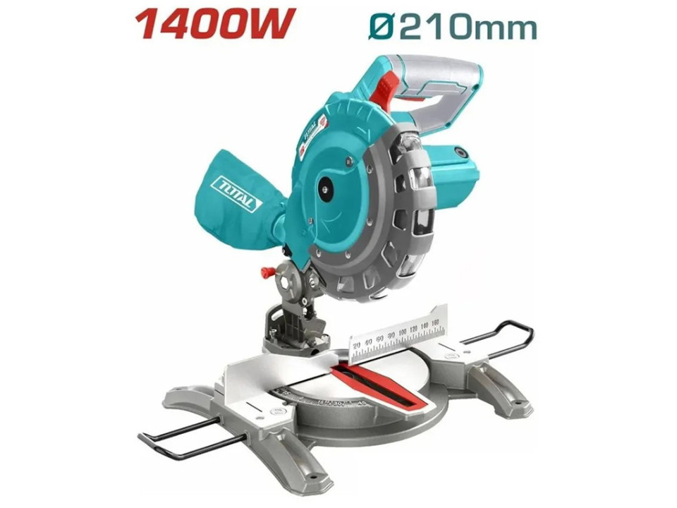 TS42142107, Пила торцовочная, мощность 1400Вт, 5000 об/мин. размер лезвия 210мм x 25,4мм, TOTAL
