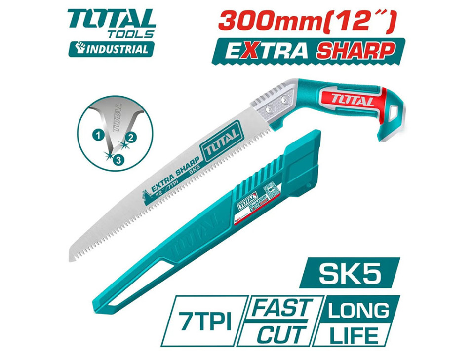 THPS3008, Пила садовая,12'/300мм,SK5, 7TPI, термообработанные зубья,тройные зубья TOTAL