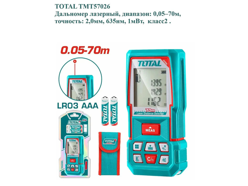 TMT57026, Дальномер лазерный,диапазон измерения: 0,05–70м,точность: ±2,0мм,тип лазера:635нм,<1мВт,кл