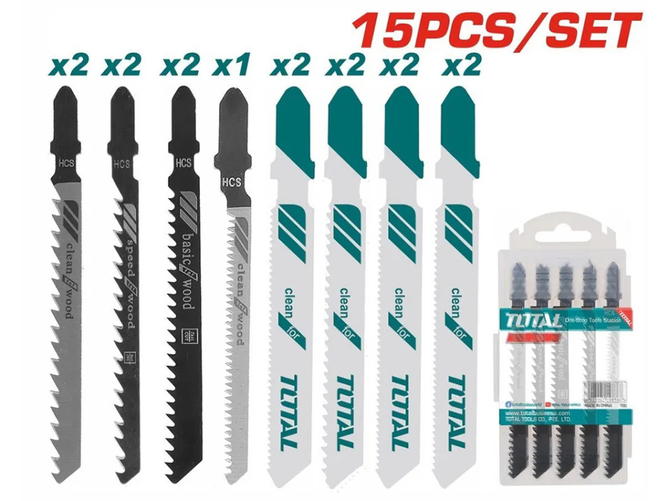 TAC1501, Набор пилок для лобзика комбинированный 15 шт, HCS TOTAL