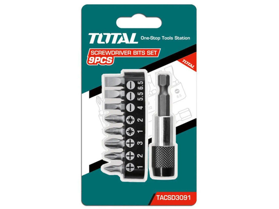 - TACSD3091, Набор бит 9 шт ТОТАL Биты : PH1,PH2,PH3,SL4.0,SL5.5,SL6.5,PZ1,PZ2, TOTAL