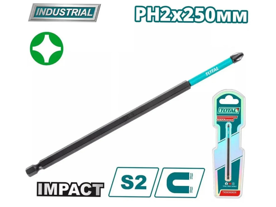 TACIM71PH2250, Биты ударные PH2,250мм,1шт. TOTAL