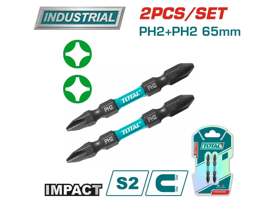 TACIM72PH265, Биты ударные, PH2+PH2,65мм,2шт/комплект TOTAL