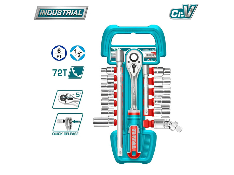 THT121171, Набор головок 1/2' с трещоткой 17шт, Cr-V сталь 50BV30 TOTAL