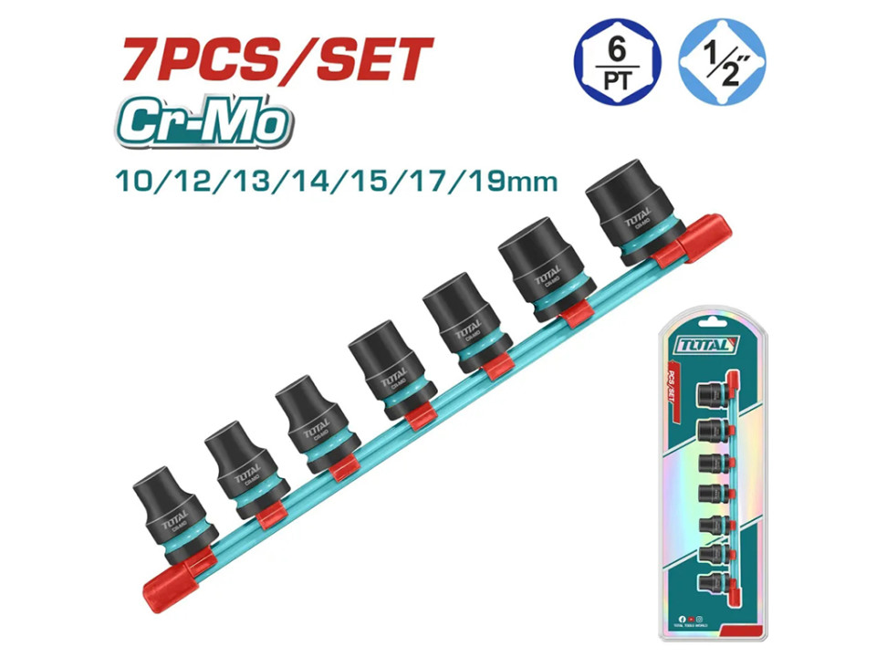 THKISD12073, Набор ударных торцевых головок 1/2' Dr. 7шт,10/12/13/14/15/17/19 мм TOTAL