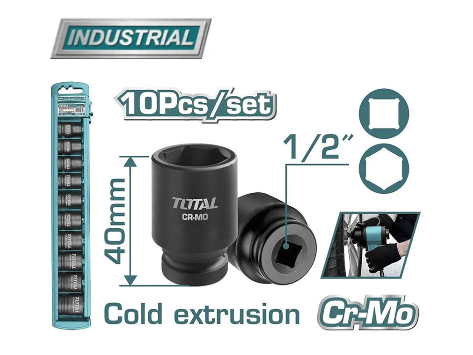 THISTD12101, Торцевые головки ударные 1/2 10шт 10.12.13.14.15.17.19.21.22.24mm TOTAL