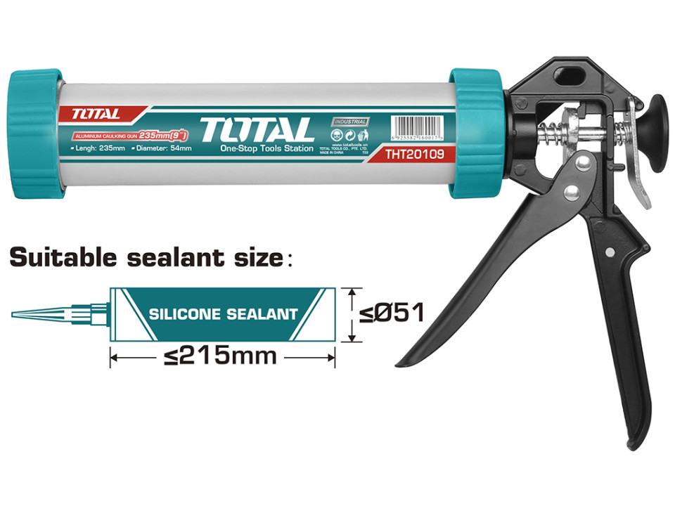 THT20109, Пистолет для герметика алюминевый 235 мм (тубус) TOTAL