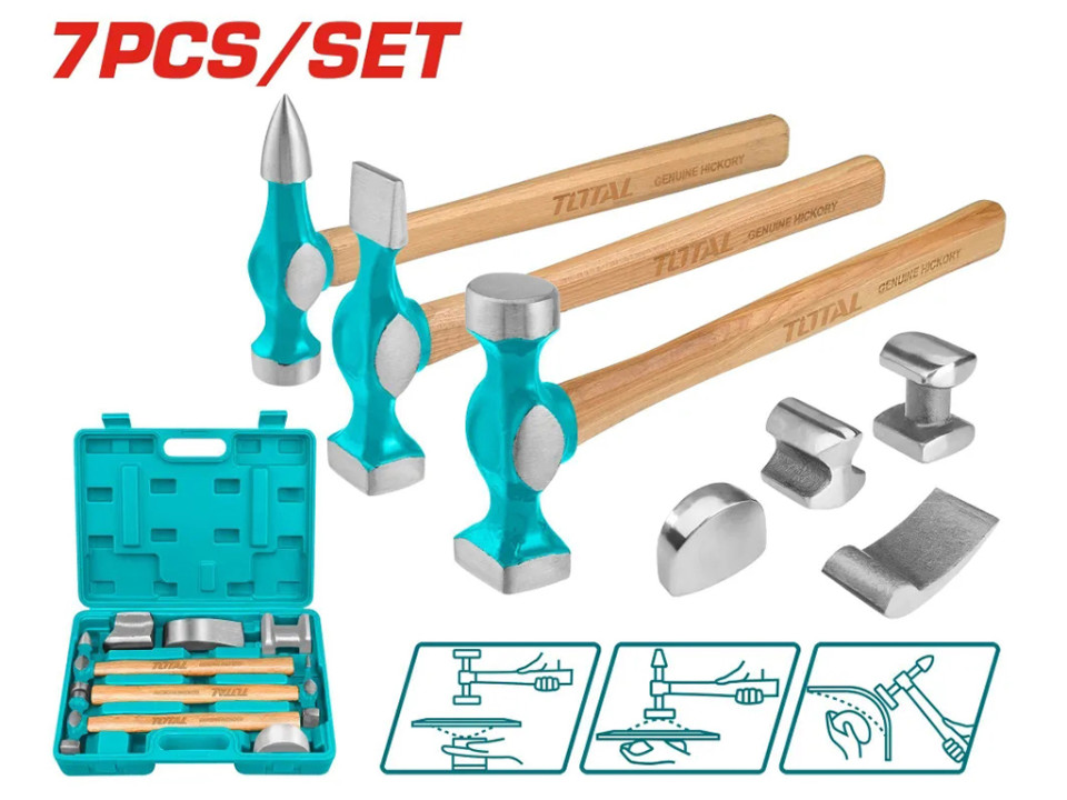 TBAFO712, Набор молотков для рихтовки 7шт для кузова и крыла TOTAL