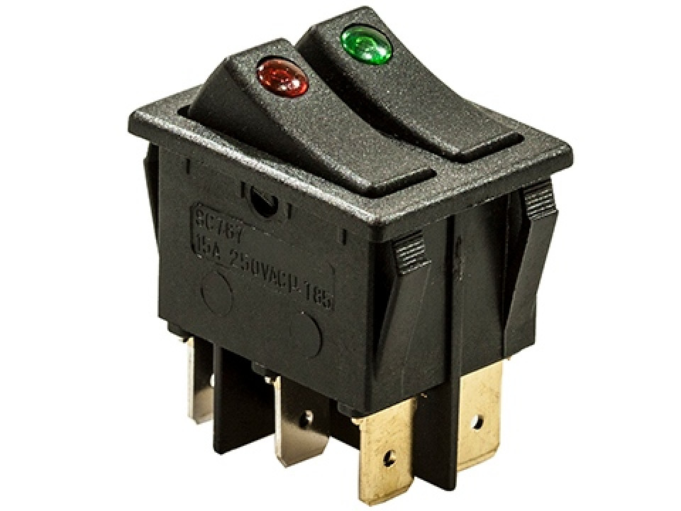 797D ПЕРЕКЛЮЧАТЕЛЬ 6 КОНТ. 250В/15.0А КРАС.\ЗЕЛ.С ПОДСВЕТ. (767), ТАЙВАНЬ